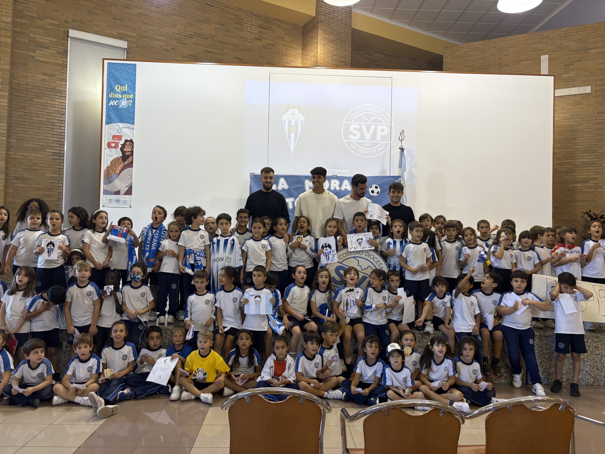 En línea con uno de los principales objetivos del Club Deportivo Alcoyano, acercar el equipo a la ciudad y reforzar el vínculo con los jóvenes, varios jugadores del primer equipo han visitado el colegio Las Paulas de Alcoy.