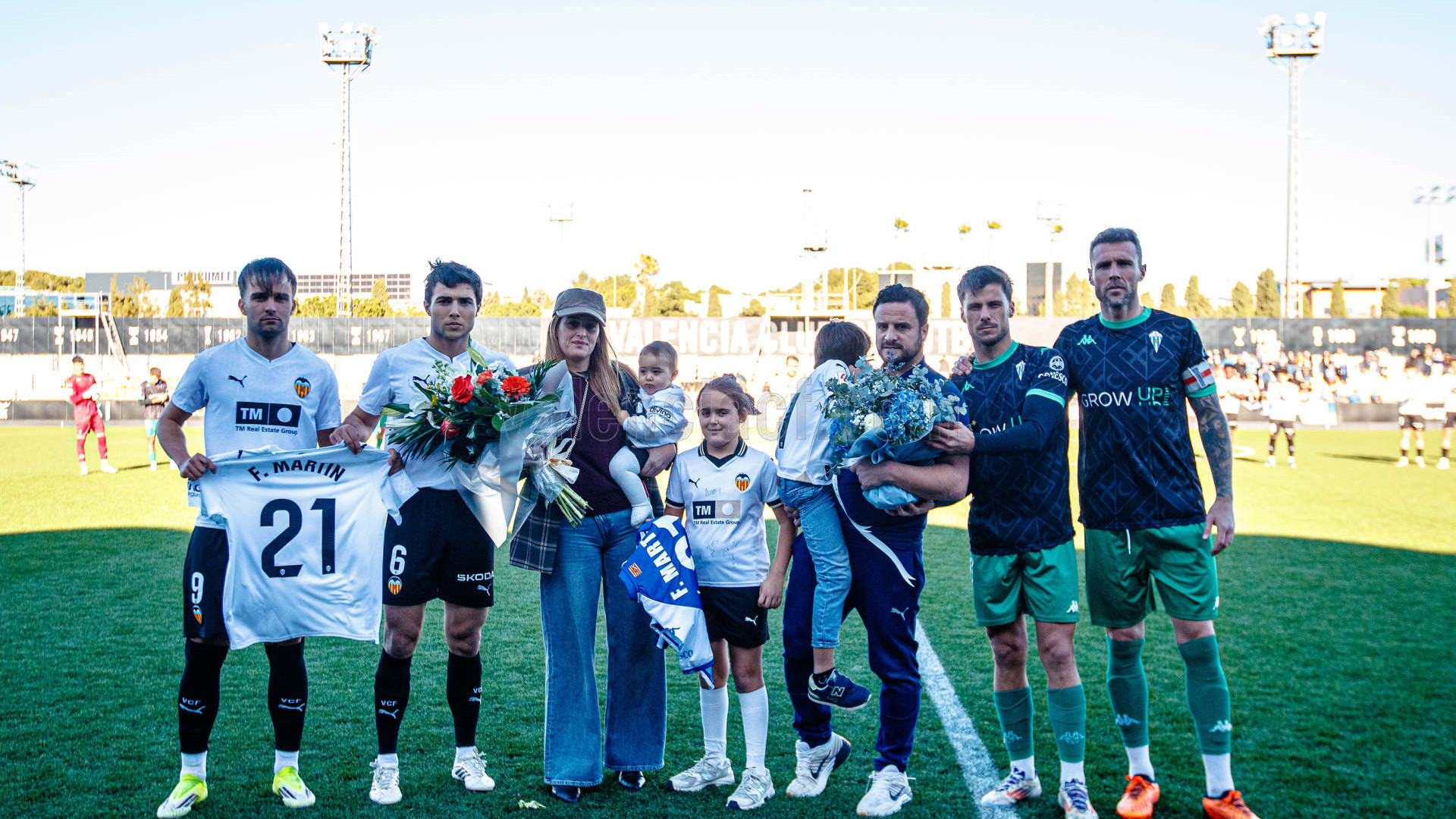 Los capitanes del CD Alcoyano Raúl González y Pablo Carbonell, que coincidieron con Fernando Marín en su etapa como jugador, entregaron a la mujer e hijos una camiseta con el dorsal y el nombre de Fer, y un ramo de flores. Por parte del VCF Mestalla, Javi Navarro y Mario Domínguez, que tuvieron a Fernando Martín como técnico en etapa cadete, hicieron la entrega.