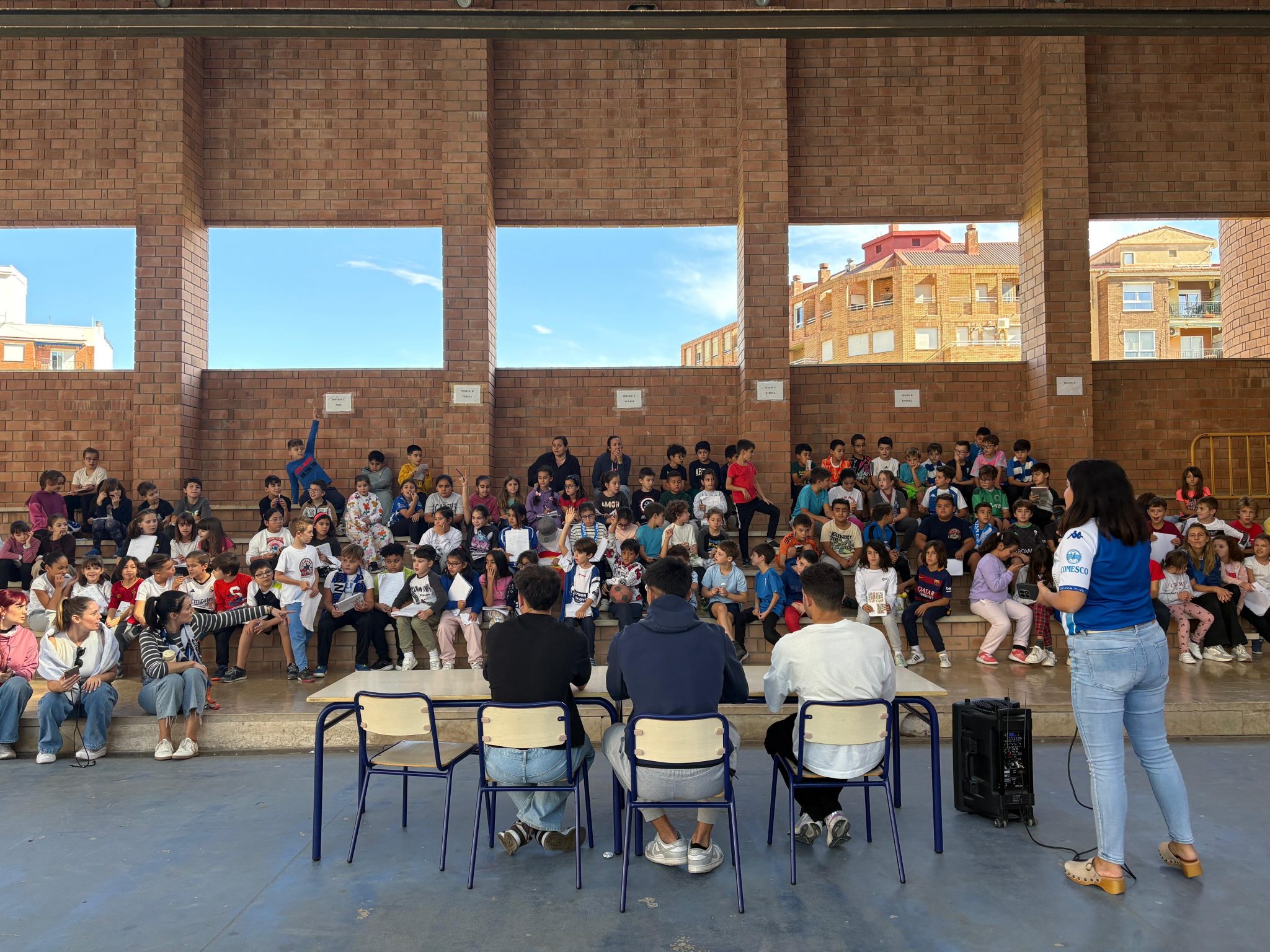 Durante la mañana, los estudiantes de Primaria han disfrutado de un rato muy especial con Izan Llinares, Tiko Iniesta y Rubén Catalá, este último antiguo alumno del centro. Los futbolistas han compartido anécdotas, han respondido a las curiosidades del alumnado y han dedicado tiempo para firmar autógrafos y hacerse fotos con ellos. A través de esta iniciativa, el CD Alcoyano reafirma su compromiso con la comunidad educativa alcoyana, acercando el club a los colegios y fomentando entre los más pequeños la ilusión y el sentimiento por los colores blanquiazules.